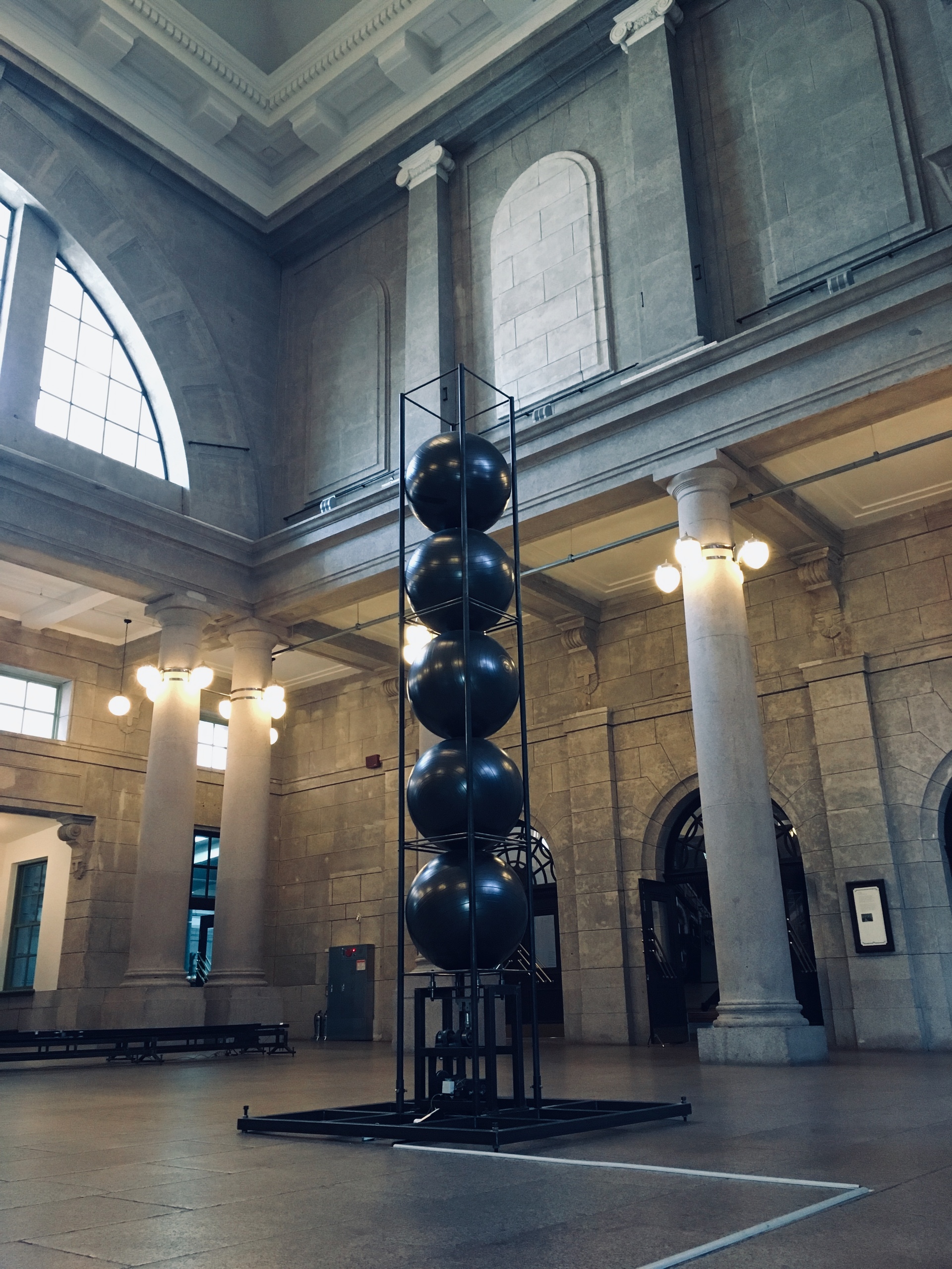 Solaris_ 2019_ steel, motor, pvc ball_ 160x450x60(cm)_ repeat performance