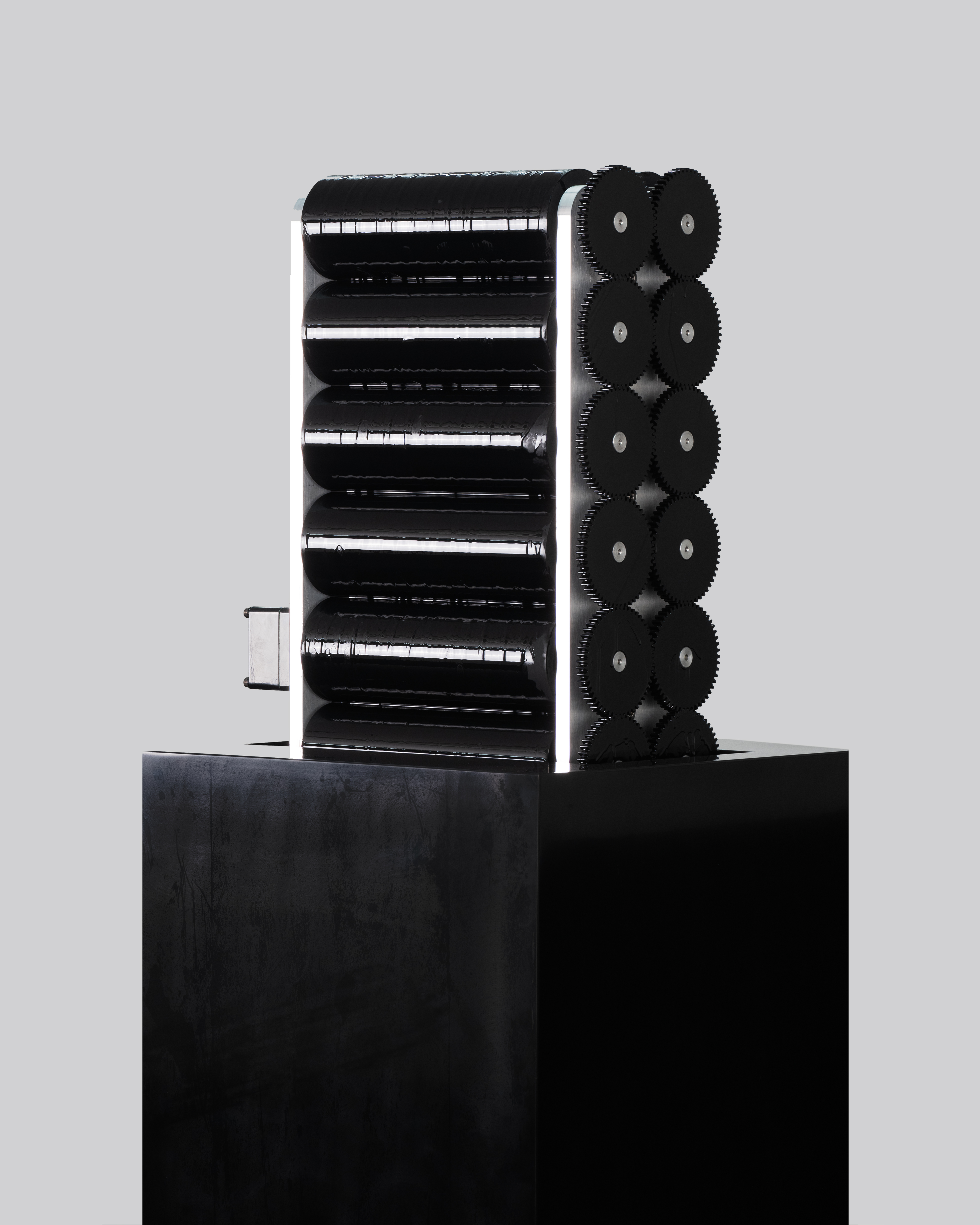 Jung Sungyoon is particularly interested in a machine’s internal structure and its processes that are usually barely visible. His concern is not merely about its workings but the direct correlation between its external surface and its internal parts, encompassing a spectator’s way of seeing an artwork. Thus, his works can be seen as deriving from the interaction between the tangible like a machine and the intangible like the mind of a spectator seeing it. The surface of a machine he pays attention to refers to an appearance in which a product made by the device he conceived is not controlled and appears atypical but soon disappears. His work seems to be a sculptural performance that imparts flexibility to a rigid machine. Thus his work demonstrates sequential change. His early work focused especially on forms that are not fixed by any mechanical movement. An example is Eclipse in which two circles connected to a machine become one for a moment but are soon separated from each other while repetitively crossing. Another is Shapes in which afterimages appear on an external boundary by vibrations generating movement. His subsequent work showed his interest in the characteristic of a material’s surface and its uncontrolled, indeterminate effect. the things we have brought features elastic silicone-foam cords becoming entangled and disentangled when rotation and reverse rotation take place repeatedly while through the night displays artificial fur whose tactile surface arbitrarily transforms as it rotates vertically.