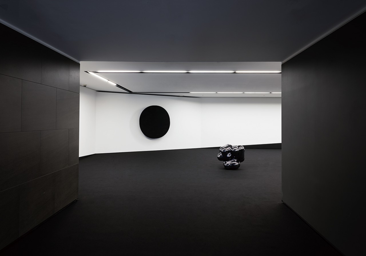 Titled A mucous membrane, this exhibition features four pieces: Two ellipses, Snakes and water, Rabbit, and a video work Amalgam. The exhibit’s Korean title grape flavor is a metaphor for Jung’s work, referring to the texture of grape skin, grape savor, and sensations aroused by its smell, while its English title A mucous membrane reveals its explicit meaning, a sticky yet pellucid mucous membrane. You are above all advised to view his works, bearing some feeling of mucous membranes the artist mentions in mind. In Two ellipses, two ellipses slowly turn around an axis in opposite direction of each other. The two ellipses look like one single complete circle by this rotation, but some wave-like contours are brought about with incessantly arising irregular rhythmical vibrations on the border of this circle. Moving as one body, an atypical, opaque membrane is created through a subtle disagreement. The central area of this rotation displays an unfathomable abyss-like spatiality by applying black paint that absorbs light to the surfaces of those ellipses. Snakes and water is set on a tall pedestal on which two-rowed, six-tiered rollers are filled with lubricant. As each roller interlocks with gears, the level of lubricant goes up or down when the lower roller rotates, constantly generating and maintaining films. Each roller has an influence on forming each film by being separated or united through their independent movement. The film engendered in this way portrays a situation of tactile contact arising when a mucous membrane influences or is influenced by another. In Rabbit a sphere appears as a lump. This work is a three-dimensional representation of what Jung has simulated arbitrarily. This first of all has capsule-like membranes wrapping a sphere in a trajectory generated when the sphere moves around at a distance of its diameter. The sphere wrapped up with several capsules is also covered with one large membrane. While each individual membrane stands for the power to expand while the membrane wrapping up all like a net refers to the power to contract. This work is a representation of a point where each individual power to expand to the outside from the inside can coexists with the power to contract from the outside to the inside creating a dramatic, static situation in which each position reaches a critical point. His video work Amalgam displays a mixture of mucous membranes and membranes he touched on in other pieces, physical property and texture he was interested in, and form. These elements show the cycles of increasing in volume, separation, and reduction. This is similar to the fact that an amalgam, also the title of this work, is an alloy of mercury with another metal that may be a liquid, a soft paste or a solid, depending upon the proportion of mercury. With this, he intended to create an invisible thin membrane cutting across the boundary between reality and imagination.